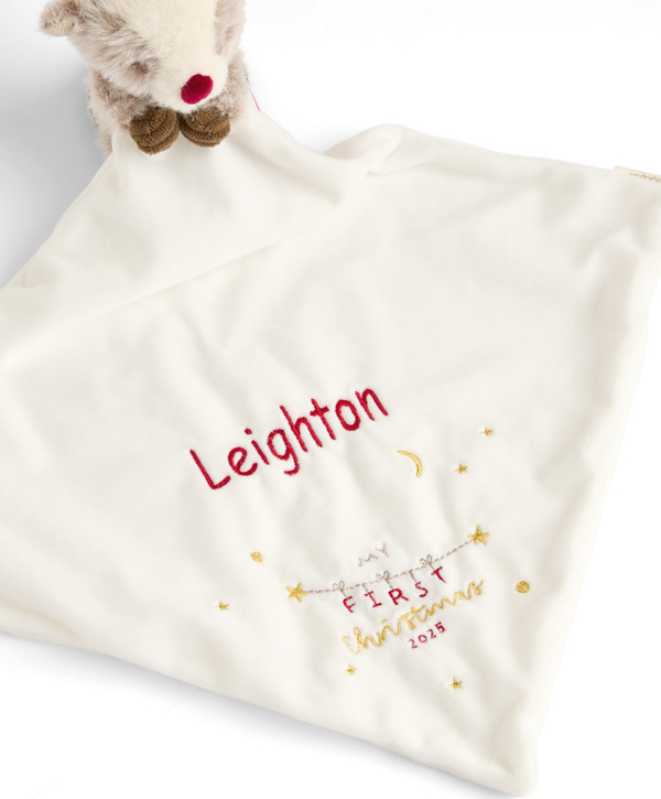 Ajándékozz meghitt társat ezzel a bájos Dash rénszarvasos rongyival! A legpuhább anyagokból készült, és kedves „Első karácsonyom 2026” hímzés díszíti. Tökéletes választás, hogy puha öleléssel és megnyugtató közelséggel kísérje végig a baba első ünnepi szezonját és azon túl is.