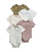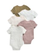 Rövidujjú bodycsomag, 5 darab – Bordázott, színes-lányos
