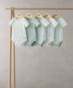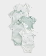 A tökéletes hazatérő kollekció, ez a gyönyörű, időtálló minőségű újszülött kollekció azért készült, hogy gondoskodjon kisbabádról. Fedezd fel a stílusos baba alapdarabok széles választékát! Legyen szó bájos mintás többdarabos rugdalózó szettekről, body szettekről vagy praktikus előkékről, amelyek megóvják a baba ruháit az étkezések alatt, itt mindent megtalálsz. Emellett a kollekcióban elengedhetetlen baba alapdarabok, mint például zoknik, karmolásgátló kesztyűk is helyet kaptak. Praktikus 5 darabos rövidujjú body csomag praktikus nyakkivágással és patentos rögzítéssel a lábak között, különböző bálna témájú mintákkal, beleértve a hímzést.