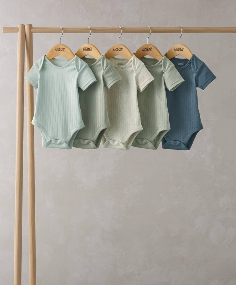 Rövidujjú bodycsomag, 5 db – Bordázott, Zöld