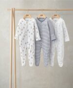 Ez a tengerész stílusú, 3 darabos rugdalózócsomag tökéletes választás a nyári napokra. Vidám mintáival és praktikus kialakításával kényelmes viselet a baba számára – akár nappal, akár éjszaka.