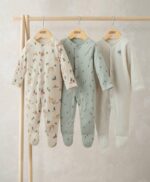 Ez a bájos, erdei témájú 3 darabos rugdalózószett tökéletes választás a hideg napokra. Puha pamut anyagának és téli mintáinak köszönhetően kényelmes viselet nappal és éjjel is.