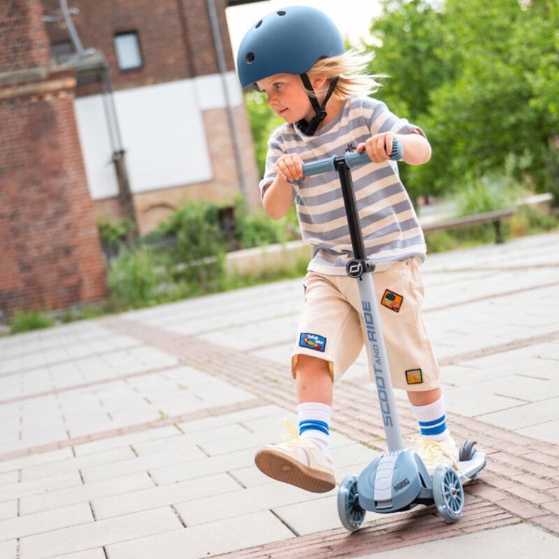 A Scoot and Ride Highwaykick 3S roller csomag tökéletes választás a kis felfedezők számára, hiszen a stabil és könnyen irányítható roller mellett egy biztonságos, kényelmes sisakot is tartalmaz. A kétféle kormányzási mód segíti az egyensúly és koordináció fejlődését, míg a LED-es kerekek és a sisak hátsó világítása gondoskodnak a jobb láthatóságról. Praktikus, összecsukható kialakítása miatt ideális mindennapi használatra és utazáshoz is.