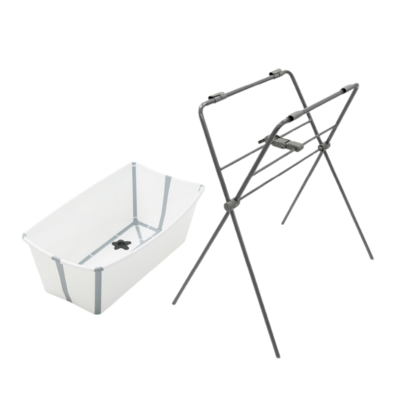 A csomag tartalma: Stokke Flexi Bath összecsukható babakád, Stokke Flexi Bath kádállvány.