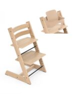 A klasszikus fa etetőszék babák és gyerekek számára. A Tripp Trapp etetőszék forradalmasította a gyermek székek kategóriáját 1972-ben, amikor először piacra került. Tervezése alkalmassá tette, hogy a gyermek közvetlenül az étkezőasztalhoz ülhessen, így a család szerves részeként foglal helyet az étkezések során és tanulhat, fejlődhet a szülök mellett. Az intelligens állítható tervezés lehetővé teszi a magasságok és mélységek állítását nem csak az ülőrészen, de a lábtámaszon is. Helyes beállítás esetén nem csak kényelmesen, de ergonómiailag tökéletes pozícióban ül a gyermek akárhány éves.