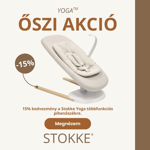 *Az ajánlat bármely Stokke Yoga multifunkciós pihenőszék vásárlásakor érvényes 2025.09.26-tól 2025.10.26-ig, vagy a készlet erejéig. Az akció más kedvezménnyel nem összevonható.