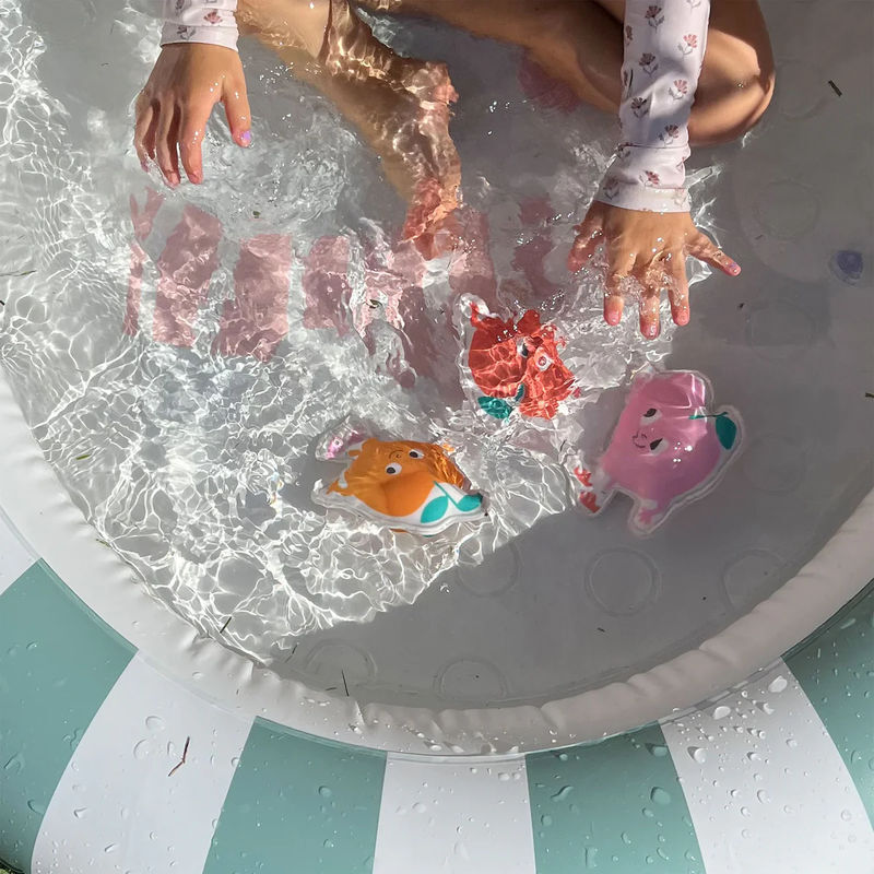 A Sunnylife merülő játékfigura szett (3 db) – Poppy the Peach Multi ideális választás a nyári pancsoláshoz. A természetes gumiból készült, homokkal töltött figurák gyorsan lesüllyednek, így a gyerekek játékosan fejleszthetik merülési készségeiket. Vidám formáik és színes megjelenésük miatt garantáltan a medence kedvencei lesznek!