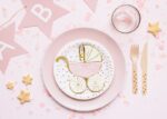 Babakocsi formájú rózsaszín-arany papírszalvéta. Összehajtott méret 14×15 cm, széthajtogatott méret 28×30 cm. 20 darab szalvéta egy csomagban. Mesés dekoráció egy babaváró buliba.