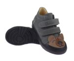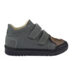 TD Shoes tavaszi tépőzáras cipő kisfiúknak. Szürke, bőr béléses, nubuk bőr felső résszel. Könnyű gumi talp orrvédővel, állatos.