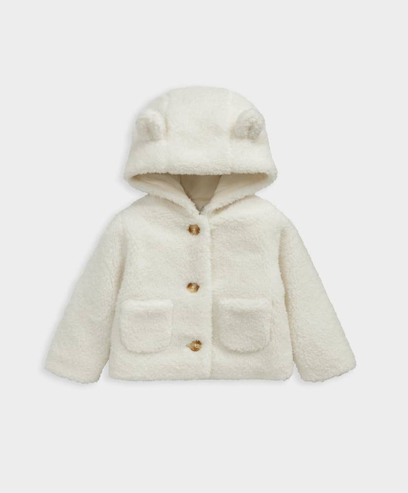 Öltöztesd kisbabádat ebbe a puha és bájos teddy kiskabátba! A krémszínű, kapucnis kiskabát igazán szerethető darab a hidegebb napokra – nemcsak melegen tart, de mosolyt is csal mindenki arcára.