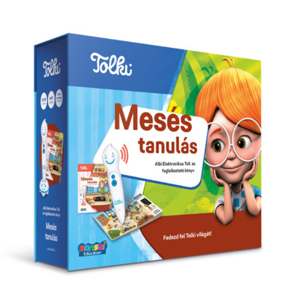 A Tolki Mesés tanulás – interaktív könyv szettben TOLKI elektronikus tollal működő, interaktív hangoskönyv 3-7 éves gyerekek számára. A szórakoztató stílusú tananyaghoz több mint 2800 rögzített szöveganyag és egyéb hang tartozik. A könyvben mesék, versek, kvízjátékok is vannak a sok hasznos tanulnivaló mellett. A kiadvány nem csak mesekönyv, használata során a kis olvasók számos képessége fejlődik. Alkalmas a szülőkkel, testvérekkel közös és az önálló tanulásra egyaránt. A több órányi hanganyag és a többszáz kvízjáték különösen tartalmassá teszik a könyvet. A Mesés tanulás vidám és könnyen kezelhető, ezért nagyon szeretik a gyerekek!