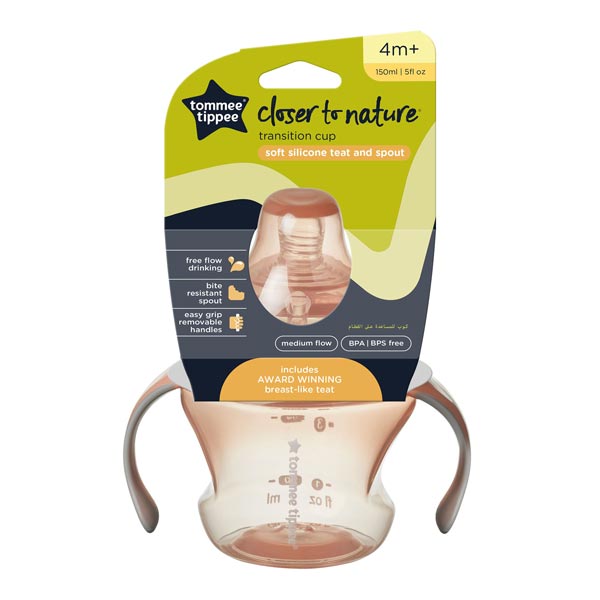 tommee tippee Closer to Nature Transition cup tanulópohár 150 ml, rózsaszín