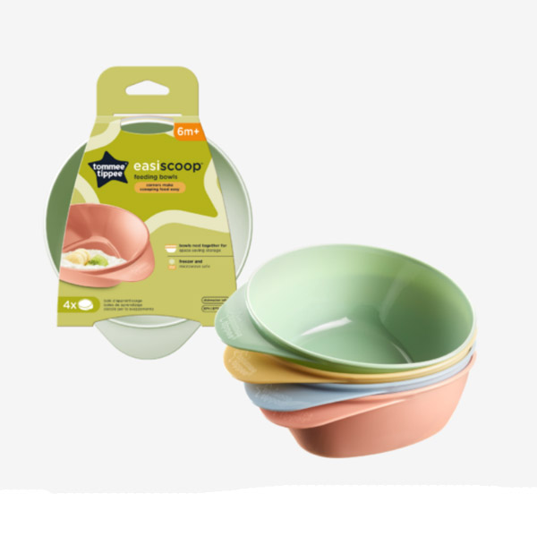 Ezek a Tommee Tippee Easi Scoop Színes etetőtálak 6 hó+ (4 db) fedő nélküli, vidám és színes etetőtálkák praktikus kellékei az otthoni etetésnek. A tálkák alja háromszög alakú, könnyen kikanalazható belőle az utolsó falat is, nem kell többé kergetni a borsószemeket. Egymásba rakva is tárolhatók így kevesebb helyet foglalnak.