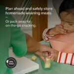 Az otthon elkészített bébiétel könnyedén és biztonságosan eltehető ebbe a praktikus Ételtároló edénykébe (Pop-ups weaning pots). Ha túl sok lett a leturmixolt püré, az edényben későbbi felhasználásig lefagyasztható. A gyermek meg is etethető belőle, háromszög alakú aljából könnyen kikanalazhatók még az utolsó falatok is, nem kell többé kergetni a borsószemeket.