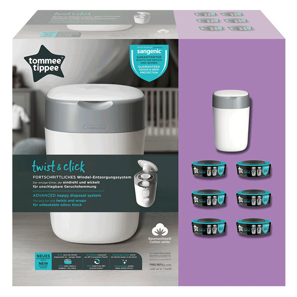 Tommee Tippee Sangenic Twist&Click 6 db citrus utántöltő + ajándék pelenkatároló vödör
