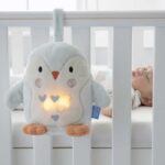 A Tommee Tippee Zenélő, világító alvássegítő plüss Ollie bagoly tökéletes társ a nyugodt éjszakákhoz. Négy megnyugtató hangot játszik, köztük szívdobogást és Brahms altatódalát, valamint állítható fényerővel rendelkezik. A CrySensor technológia automatikusan érzékeli a baba sírását, és újraindítja a nyugtató hangokat. USB-ről tölthető és könnyen rögzíthető tépőzárral, így mindig kéznél van, amikor a baba megnyugtatására van szükség.