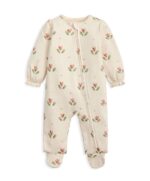 Ez a virágmintás, hosszúujjú rugdalózó ideális választás hűvösebb napokra. A bájos tulipánminta és az integrált 3D lábrész még édesebbé teszi a megjelenést. A fodros gumírozott ujjvégek és az elöl végigfutó cipzár megkönnyítik a baba öltöztetését, a 100% pamut anyag pedig biztosítja az egész napos kényelmet.