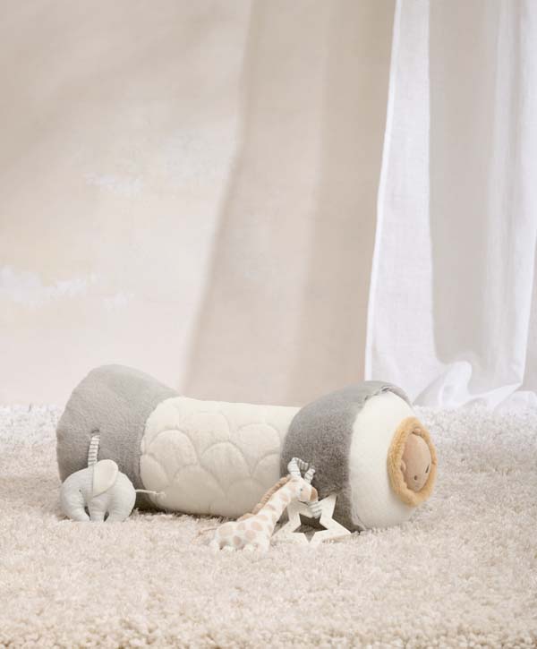 Számos interaktív tulajdonsággal rendelkező henger, ami hosszasan leköti gyermeked figyelmét. Szuper puha anyagból készült, kisbabád kényelmesen hasalhat rajta, miközben a hozzá tartozó csüngő játékok érintésre zörögnek, csörögnek. A babatükörben pedig csöppséged felfedezheti önmagát.
