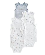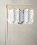 Ez az 5 darabos, tengerész stílusú ujjatlan body szett modern megjelenést és praktikumot kínál a mindennapokra – tökéletes választás a kis felfedezők ruhatárába.