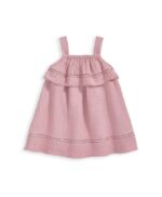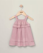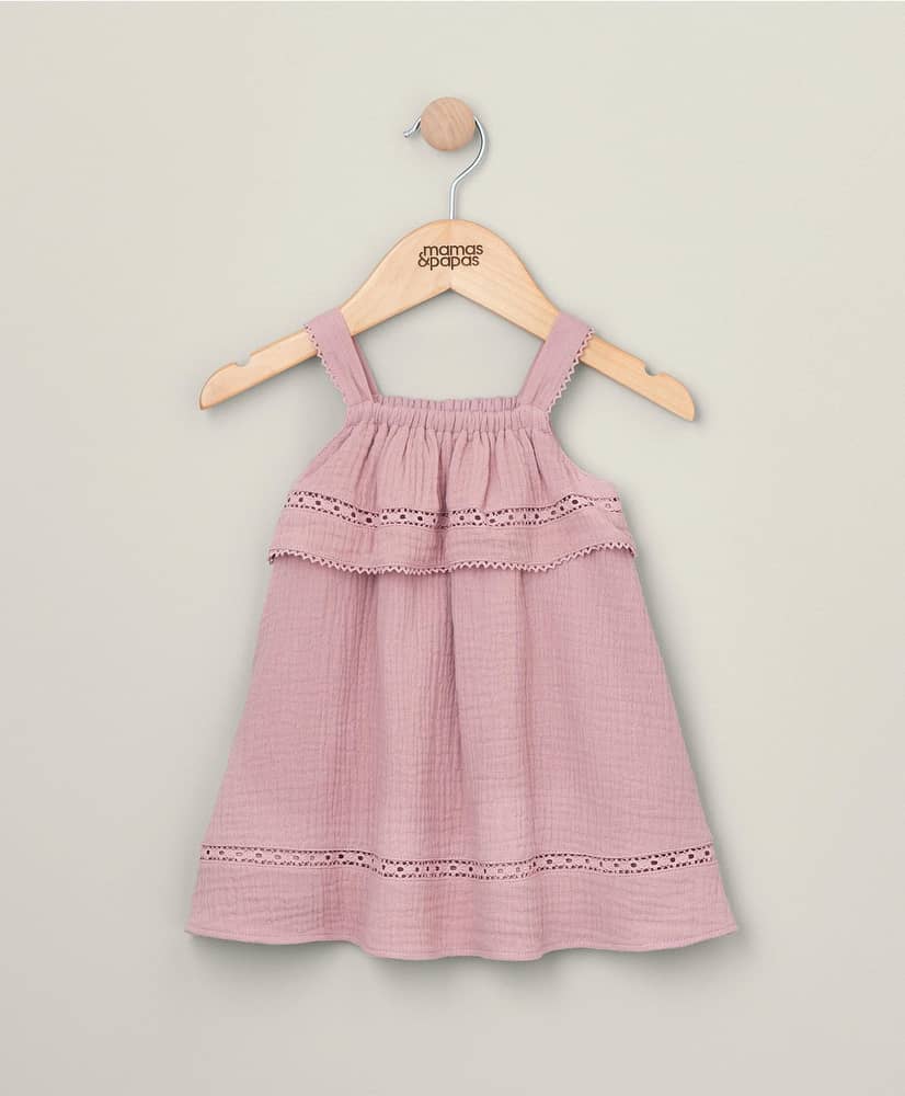 Rózsaszín szövött ruha csipke részletekkel: Rózsaszín szövött ruha csipke szegéllyel. Csipke szegélyű pántokkal. Teljesen bélelt.