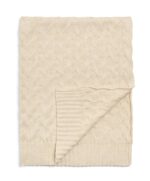 Ez a krémszínű, részletgazdag kötésmintás takaró puha kötött pamutból készült.