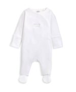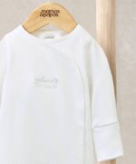 Ez a bájos, fehér rugdalózó tökéletes választás a mindennapokra. A „Welcome to the World” feliratú nyomat finoman köszönti az újszülöttet, miközben a hosszúujjú kialakítás és az átlapolós, elöl és a lábak között patentos záródás kényelmes öltöztetést biztosít. Kizárólag puha pamutból készült, így gyengéd a baba érzékeny bőréhez.