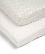 2 darab organikus pamut gumis lepedő egy csomagban. Mindkét lepedő neutrális, uiszex, mégis gazdag meleg tónusokban, elegáns, apró mintákkal díszített.