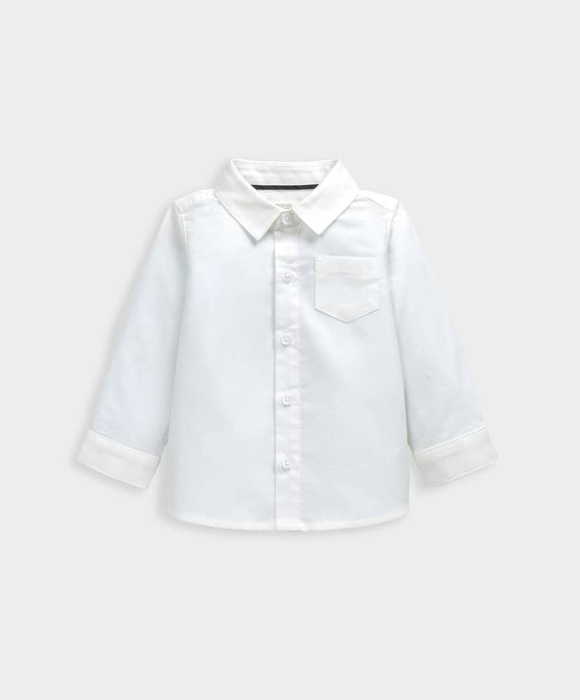 Hosszú ujjú, fehér ing elülső zsebbel és gombos zárással