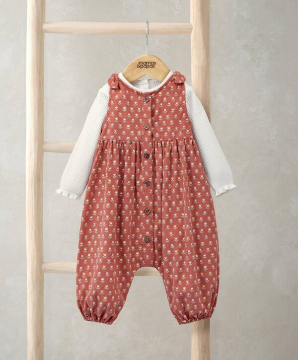 2 részes sötétrózsaszín kord kantárosruha virágos bodyval