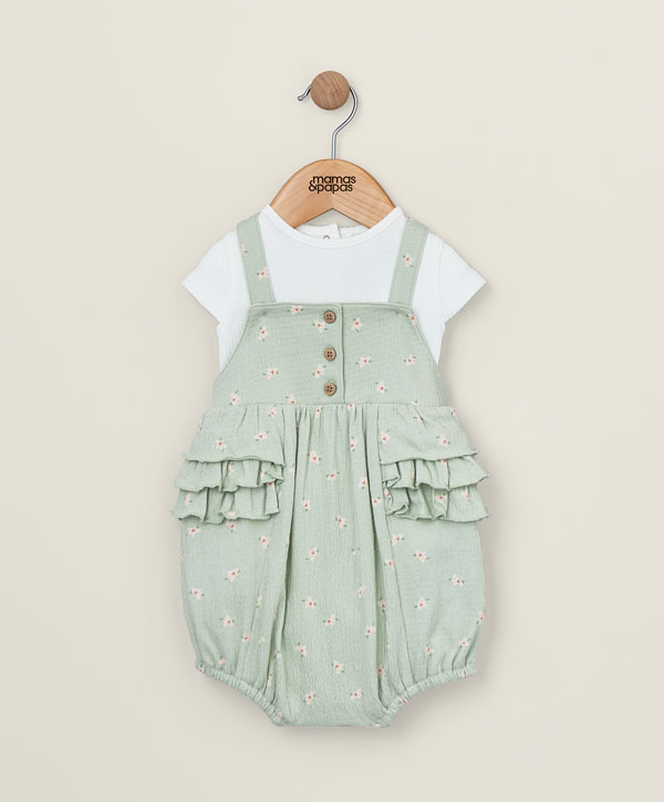 2 részes virágmintás body és kötött kantáros rövidnadrág szett